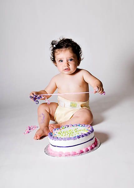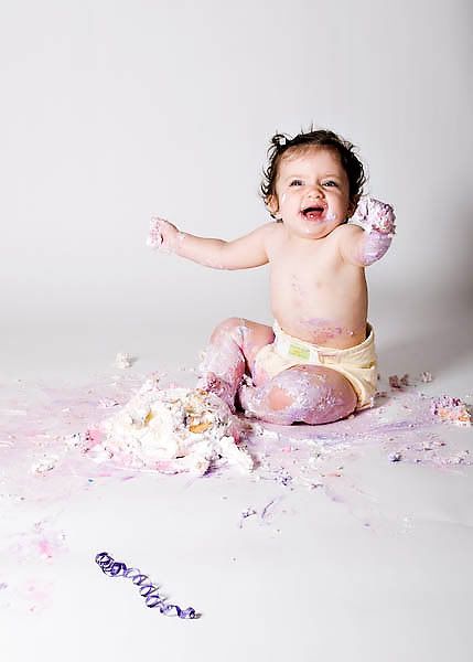 It's really not fair that I get to meet all these fabulously cute babies. Would you look at the sparkling blue eyes on this sweet girl!! And happy? Oh my goodness...she was so even tempered through the whole session. As usual, we started our 1st Birthday session with some clean portraits, and then moved on to cake time. Amazingly, the mess was 97% contained to my paper backdrop. So if you're thinking about having a session like this, but are concerned about the mess, it really isn't so bad. Just have a bath ready at the end because babies get VERY sticky!